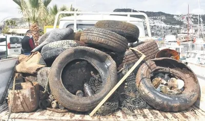 Denizden neler çıkmıyor ki? Otomobil lastiği... Yüzlerce su bidonu... O kadar çok ki.