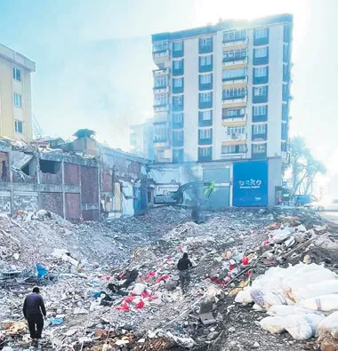 Yıkılan binaların çoğunun enkazı kaldırılmış... Ama hâlâ yıkılacak binalar var... Devam eden enkaz kaldırma çalışmaları da.