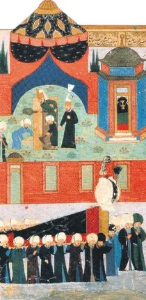 Kaleye yaklaşınca, hafızlar Ku'ran okumaya başladı. Durumu anlayan padişahın yakın çevresindeki görevliler başlarına siyah sarıklar giydiler.