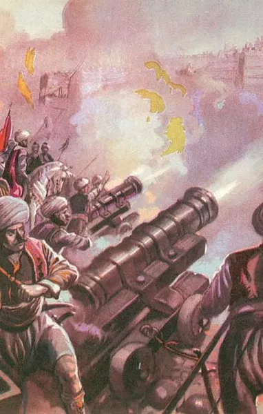 Her türlü olasılığı göz önünde bulundurarak yardımcı kuvvet çağırıyorlar ve bütün bir kıta asker, hiçbir engellemeyle karşılaşmadan ellerini kollarını sallaya sallaya içeriye giriyor ve her şeyden habersiz Bizanslı dış sur savunucularını arkadan sarıveriyorlar. Birkaç savunmacı, Türkleri arkalarında görünce birden paniğe kapılıyor ve böylece bütün savaşlarda toplardan çok daha öldürücü bir etki bırakan feryat, kulaktan kulağa hızla yayılan bir söylentinin acı feryadı yükseliyor: 'Kent ele geçirildi.' Türkler sevinç içinde ve çılgınca haykırarak bu yalanı tüm çevreye yayıyorlar: 'Kent ele geçirildi, kent ele geçirildi.'