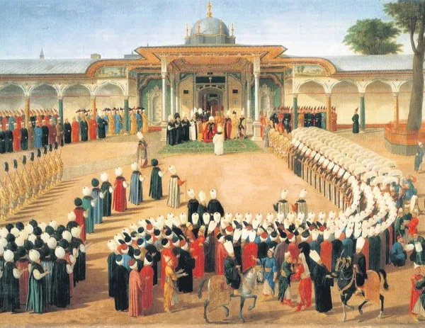 Osmanlı padişahı ile bayramlaşma hakkı olanlar kanunnamede belirlenmişti. Bu hakkı haiz olan kişiler sabah namazını Ayasofya Camii'nde kıldıktan sonra saraya gidip Divân-ı Hümâyun'da toplanırlardı. Topluluğun geldiği haberi padişaha iletilince o da "arz odası"na geçerdi. Daha sonra da görevlilerin dizildiği yoldan tahtın bulunduğu yere gelirdi.