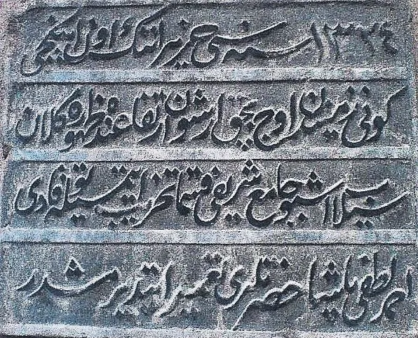 Behzat Camii'ndeki seli anlatan kitabe.