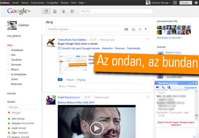 Fakat Google+ diğer yandan da aslında Google'ın yıllardır bu ana hazırlandığını gösteren bir servis. Google'ın neredeyse tüm sosyal servislerini bir çatı altında topluyor. Gmail, Gtalk, YouTube, Picasa gibi servisleri Google+ içinden kullanabiliyorsunuz. Örneğin bir video paylaşmak istediğinizde YouTube altyapısıyla paylaşıyorsunuz. Ayrıca küçük bir ayrıntı; animasyonlu GIF dosyalarını paylaşabiliyorsunuz sorunsuzca. Facebook'ta ise animasyonlar oynatılmıyordu.