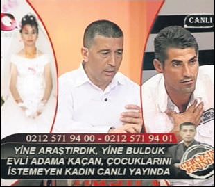 Çarşamba günü Yalçın Çakır'ın Flash TV'deki programında da öyle oldu. Üç çocuk annesi kadın evden kaçmıştı. Kocası peşindeydi. Yalçın Çakır öfkeli kocayı stüdyoya aldı, kadını da telefonla yayına bağladı.
