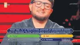 Ali Murat Ağlaç adlı genç yarışmacı, ATV'nin Kim Milyoner Olmak İster? yarışmasında başarılı bir performans sergileyip 100 bin liralık soruya kadar gelmişti. Soru, "Hangisi ateş, su ve toprakla birlikte günümüzde Çin astrolojisindeki öğretilerden VuXing içerisinde sayılan evrenin temel bileşenlerinden birisidir? A) Tahta B) Işık C) Aydınlık D) Karanlık" şeklindeydi.