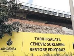 "Haliç Metro Köprüsü'nün Galata tarafindaki Ceneviz surları uzunca bir süredir restorasyon için panolarla çevrili. Ancak fotoğraflarda da görüldüğü gibi daha restorasyonun başlamaması bir yana, insanlık mirası tarihi surların üzerindeki ateş tuğla duvarın oluşturduğu deformasyon bile giderilememis durumda. Devraldığı metro hatlarindan birini bile tamamlayıp açamayan ama dünyada aynı anda hazır projelerdeki 10 metro hattını yapmakla övünen belediyemiz tarafından..."