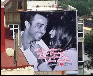 Ve, bu sıradanlığın içinde birdenbire karşımıza Demet Akalın çıktı. Sevgilisi Okan Kurt'a sürpriz olsun diye Etiler'de bir binanın duvarına birlikte çekilmiş fotoğraflarının olduğu dev afiş astırdı.