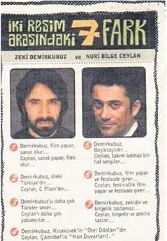 Antalya Altın Portakal Film Festivali'nde yaşananların üzerine bir kere daha iyi anladım; Nuri Bilge Ceylan'ı Zeki Demirkubuz'dan ayıran çok belirleyici, sağlam farklar var. Nuri Bilge Ceylan, filmleriyle daha evrensel temalara seslenerek uluslararası arenada yaptığı başarılarla konuşulurken, Zeki Demirkubuz, sahneye çıkıp dedikodu yapar gibi konuşuyor. Demirkubuz, sürekli NBC'ye gönderme yapacağı yer arıyor ama NBC'nin ağzında bugüne kadar Zeki Demirkubuz'un Z'sini duymadık. Bu arada Uykusuz'un köşesinden alıntıyla yedi farkı tekrar hatırlayalım.