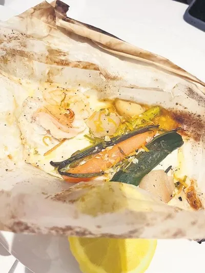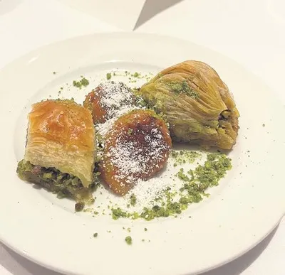 Yemeklere ilk olarak tarhana cipsli bal kabağı çorbasıyla başlıyoruz, ardından fava, yaprak sarması, topik, lakerda ana yemek olarak kağıtta levrek geliyor. Son olarak da Fatma Şahin ile beraber davetliler Antep baklavasını tadıyor ve bayılıyorlar, gerçekten de Antep mutfağı tarifsiz güzellikte.