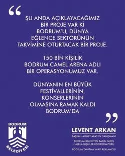Bodrum, Türkiye'nin turistik cennetlerinden biri olarak bilinirken, şimdi ise dünya eğlence sektörünün takvimine girecek büyük bir projeyle (!) adından söz ettiriyor. 150 bin kişilik devasa bir festival alanı yapılacakmış. Konuyla ilgili paylaşımı görünce 1 Nisan şakası yapılıyor sandım. Açıklamada "Bodrum'da dünyanın en büyük festivallerinin, konserlerinin olmasına ramak kaldı" deniyor.
