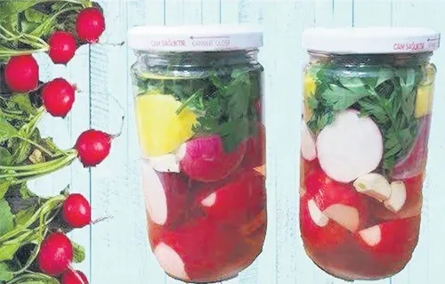 YAPILIŞI: Öncelikle turpları çok iyi yıkıyoruz ve dilim dilim doğruyoruz. Doğranmış turpları bir tencereye koyuyoruz. Turpların üzerini geçecek kadar su ekliyoruz. Tuzu, sirkeyi, sarımsakları ve toz şekeri de koyuyoruz, tuz ve şekerin erimesini sağlamak için karıştırıyoruz. Tencereyi ocağa koyuyoruz. Turplar pişince ocağın altını kapatıyoruz. Suyuyla birlikte bir cam kavanozun içine koyup ağzını sıkıca kapatıyoruz.