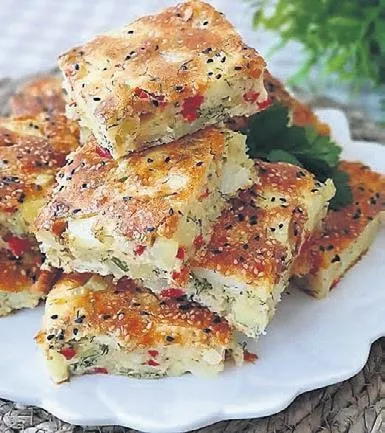 YAPILIŞI: Patateslerin kabuklarını soyup, küçük küpler halinde doğrayın. 3 yumurtayı tuz ile özdeşleşene kadar çırpıp sıvı yağ, süt, rendelenmiş soğan, kaşar peyniri ve yoğurdu da ilave edip çırpmaya devam edin. Baharatları ekleyin. Un ve kabartma tozunu eleyerek yavaş yavaş karışıma ekleyin. Doğradığımız patatesleri de ekleyip iyice karıştırın. Son olarak doğradığımız maydanozları ve beyaz peyniri ilave edip, tahta kaşıkla karıştırın. Yağlanmış tepsiye dökün. Üzerine dilerseniz bolca susam ve çörek otu serpip önceden ısıtılmış 175 derece fırında üzeri kızarana kadar yaklaşık 50 dakika pişirin.