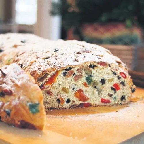 YAPILIŞI: Toz maya, 1 yemek kaşığı toz şeker, 2 yemek kaşığı un, 1 su bardağı ılık su-süt karışımını 10 dakika mayalandırıyoruz. Yarım su bardağı ılık sütle şekeri eritiyoruz. Eritilmiş margarintereyağı karışımını süte ekleyip tekrar karıştırıyoruz. Yumurtaları ayrı bir yerde çırpıyoruz, karışıma ekliyoruz. Ön maya yaptığımız mayayı da ekleyip hepsini karıştırıp unu yavaş yavaş ekleyerek yumuşak hamur elde ediyoruz. Hamurumuzu 1 saat mayalandırmaya bırakıyoruz. Kabaran hamura tüm kuru meyveleri ve cevizi ekleyip tekrar yoğuruyoruz. İstediğimiz şekli verip 30 dakika tepsi mayalandırması yapıyoruz. Üzerine yumurta sarısı sürüp, 180 derecede üzeri kızarana kadar pişiriyoruz.