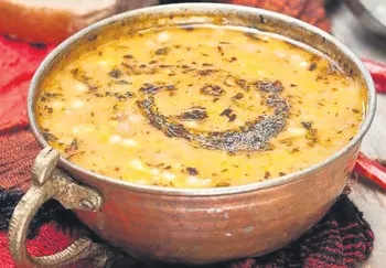 YAPILIŞI: Dövme mercimek ve nohutu önceden ıslayın. Derin bir tencerede bol suda haşlayın. Nohutlarınız yumuşayınca yeşil mercimeği ve salçanızı ekleyin ve iyice pişirin. Soğanları halka halka doğrayın, biberleri elinizde parçalara ayırın ve bakliyatlara ekleyin. Kırmızı biber, tuz ve bir tutam karabiberi ekleyin. Tencerenizi ocaktan alın. Bir tavada zeytinyağı ve tarhunu ısıtın ve çorbanızın üzerine gezdirin.