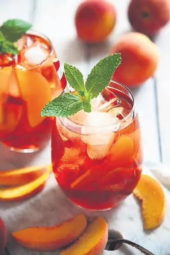 YAPILIŞI: Sekiz su bardağı suyu kaynatıyoruz. İçerisine çayları atıp demlenmesi için 30 dakika bekletiyoruz. Demlenen çayın içerisinden çay poşetlerini çıkarıyoruz. Şeftalilerin kabuklarını soyup elma dilimi şeklinde doğruyoruz. Üzerine iki su bardağı su ve bir su bardağı toz şeker ekleyip yumuşayıncaya kadar kaynatıyoruz. Bir adet limonun suyunu sıkıp, diğer limon ile birlikte kabuklarıyla dilimliyoruz. Demlenen çayı büyük bir sürahiye alıp üzerine kaynattığımız şeftalileri, limon suyunu, limon dilimlerini ve nane yapraklarını ilave ediyoruz. Buzdolabında bir gece bekletip buz, limon ve taze nane yaprakları ile servis ediyoruz.