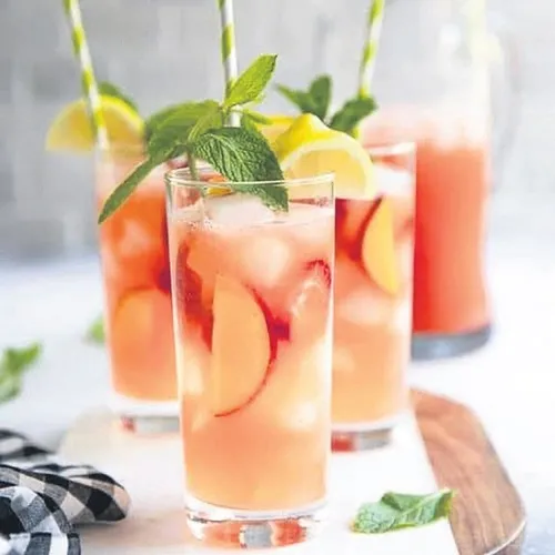 Servis edilirken buz, taze nane ve şeftali
