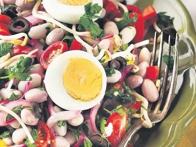YAPILIŞI: Tüm malzemeyi minik minik doğruyoruz. Üzerine yağ, limon ve tuzu ekleyip servise hazır hale getiriyoruz. Üzerini yumurta dilimleri ile süslüyoruz.