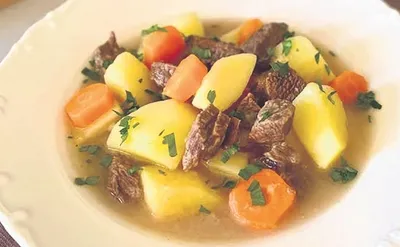 YAPILIŞI: Etleri yıkayıp 1 saat kadar soğuk çeşme suyunda bekletin. Küp küp doğradığınız soğanları ve tüm haldeki sarımsakları tereyağında orta ateşte pembeleşene kadar kavurun. Suda bekleyen etleri süzün. Suyu süzülmüş etleri tencereye ekleyerek hepsini yüksek ateşte kontrollü şekilde 5 dakika kavurun. Daha sonra ilk önce 4'e bölünmüş sonra da ortadan verev kesilmiş havuçları 4'e bölünmüş patatesleri, baharatları ve defne yaprağını da tencereye ekleyin. Tencereye 5-6 bardak sıcak su koyup yemeği pişirin. Yemek pişince buharı çıkmış düdüklünüzün kapağını açın. Yemeğin ilk sıcağı geçince tencereye sıkılmış limon suyunu ekleyip kısık ateşte 3-4 taşım kaynatıp ocağın altını kapatın. Yemeği tabaklara paylaştırdıktan sonra tabaklardaki yemeklerin üstüne kıyılmış maydanoz yaprakları serpip yemeğinizi sıcak sıcak servis edin.
