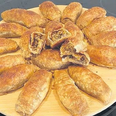 YAPILIŞI: Hamurumuzu yoğurup, dinlenmeye bırakalım. 10 dakika yeterli. Sonra ortadan ikiye bölelim ve bir 10 dakika daha dinlendirelim, hamur dinlenirse daha iyi açılır. Hamurumuzu açabildiğimiz kadar açıyoruz, margarini eritip haşhaş ve sıvı yağı katıyoruz ve hamurun her tarafına sürüyoruz resimdeki gibi katlıyoruz, bir kenara alıyoruz. İkinci hamuru da aynı şekilde açıp, sadece sıvı yağ ile her tarafını yağlıyoruz ve ilk açıp katladığımız hamuru ikincinin ortasına koyuyoruz ve ilkini nasıl kapattıysak aynı şekilde kapatıp bir tepsi içine alıp, üstünü streçleyip buzdolabına atıyoruz. Hamurun dinlenip donması lazım. Mercimeğimizi güzelce yıkayıp, üstünü geçecek kadar su koyuyoruz. Ben çok su koyup sonradan süzmüyorum, vitamini gitmesin diye yarı pişsin ama vitamini içinde saklı kalsın. Soğanımızı küçük doğrayıp sıvı yağla kavurup ve haşlanan mercimeğin içine katıyoruz, biraz karabiberle tatlandırıyoruz, damak tadımıza göre tuzla karıştırıyoruz ve iç malzeme hazır. Hamuru dolaptan alıp, 16 kareye bölüyoruz, her parçayı uzunlamasına açıyoruz. Hamuru açarken, altını üstünü az yağlıyoruz ki tezgaha ve merdaneye yapışmasın. İçine malzemeyi koyup katlıyoruz, üzerine yumurta sarısı sürüp 185 derece fırında pişiriyoruz.