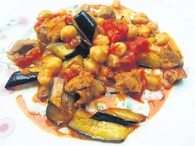 YAPILIŞI: Öncelikle doğradığımız soğanları ve biberleri zeytinyağında kavuruyoruz. Üzerine etleri koyup suyunu salıp çekene kadar kavuruyoruz. Salçaları ve domatesi ilave edip biraz daha kavurup, sıcak suyu, tuzu ve karabiberi ilave edip düdüklü tencerede etler yumuşayana kadar pişiriyoruz. Suyunu çok koymamızın sebebi, pideleri yemeğin suyu ile ıslatacak olmamız. Yemeğimiz pişerken patlıcanları az yağda kızartıyoruz. Yemeğimiz piştiğinde patlıcanları ilave edip bir-iki taşım kaynatıyoruz. Pideleri doğrayıp servis tabağına alıyoruz. Üzerine yemeğin suyundan koyup sarımsaklı yoğurdu gezdiriyoruz.