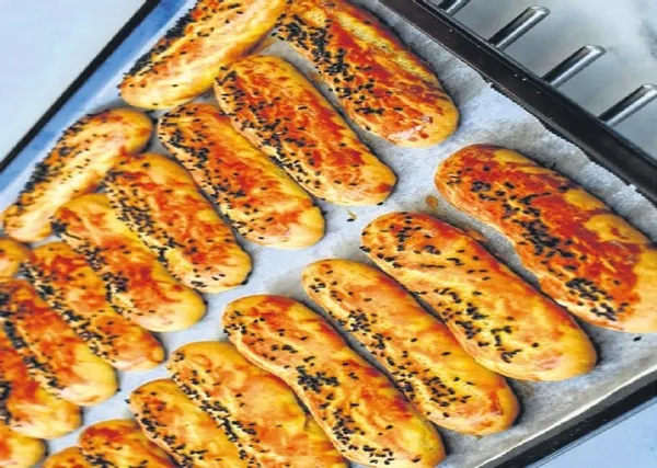 YAPILIŞI: Öncelikle ılık su içinde yaş mayayı eritiyoruz. Ardından tüm malzemeyi karıştırıp aldığı kadar un ilave ediyoruz. Kulak memesi kıvamından daha sert bir hamur elde ediyoruz. Hamur olunca çubuk şekli veriyoruz ve yağlı kağıt serilmiş bir fırın tepsisine alıyoruz. Üzerine çırptığımız yumurtayı sürüp çörek otu ve susam serpiyoruz. Önceden ısıtılmış 180 derecelik fırında pişiriyoruz.