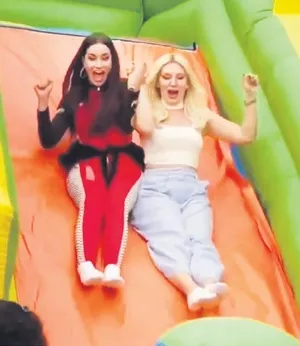 Önce kendi doğum günlerinde buluşan ikili, bu sefer çocuklarının mutlu anlarını paylaşmaya başladı. Karan'ın doğum gününde birlikte çocuk oldular, şişme kaydıraktan kayıp çocukluklarına döndüler.