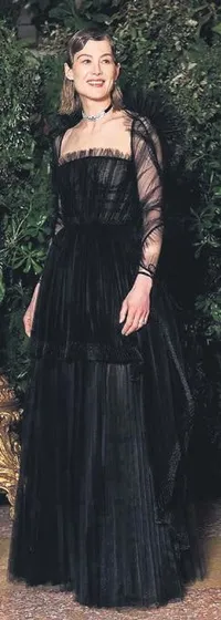 Ve tabii ki Rosamund Pike siyah tül elbisesi ile göz kamaştırıyordu.