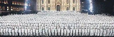 Moncler, şovuna en az koleksiyonu kadar özen gösterdi. Duomo meydanında tam 1952 adet performans sanatçısıyla kutladığı 70. yaşıyla unutulması zor, muhteşem bir şova imza attı. 1952 sanatçının yer almasının sebebi, markanın 1952 yılında Monestier-de-Clermont'da doğmuş olması. Gerçekten anlamlı ve çok etkileyici bir şovdu.