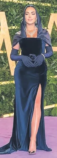 Bu öyle bir ödül töreni ki, gecenin en ünlüsü Cristiano Ronaldo'nun sevgilisi Georgina Rodriguez. Ronaldo bir Suudi Arabistan takımında oynadığı için Rodriguez'i Orta Doğu'nun kırmızı halılarında bolca göreceğiz demektir. Son dönemin trendi tül kapüşonlu bir elbise seçmiş, gayet iyi görünüyor. Bacak dekoltesi tam dozunda.