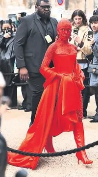 SCHIAPARELLI: Tasarımcı Daniel Roseberry her koleksiyonunda beklentileri de heyecanı da yukarı taşımayı başarıyor. Tasarımlarda en çok leopar, aslan ve kurt kafalarının kullanılmış olması dikkat çekti. Bu detayların yapımında köpük, yün, suni kürk kullanılmış ve hepsi elle boyanmış. Koleksiyon kadar konuşulan bir diğer konu da defilenin ünlü davetlileriydi. Aslan başlı tasarımı giyen Kylie Jenner ve özel dikim kırmızı bir tasarım giyen Doja Cat tüm gözleri üzerlerine toplamayı başardı. Doja Cat bir tasarım giymekle kalmamış adeta tasarımın kendisi olmuş. Vücudunu 30 bin adet Swarovski taşla kaplatmış. Duayen makyaj sanatçısı Pat McGrath ve ekibinin bu makyajı yapması neredeyse 5 saat sürmüş.