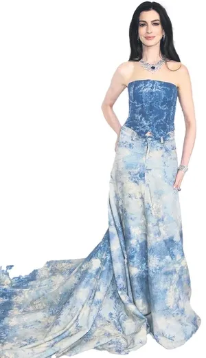 Ralph Lauren imzalı denim elbise tek başına başarılı bir tasarım olabilir ama kesinlikle Anne Hathaway'in elbisesi değil. Bu tasarım daha uç tarza sahip biri ile çok daha iyi görünebilirdi.