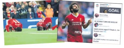 İşte o tezahürat: 'Mo Salah la la la la / Senin için yeterince iyiyse / Benim için de yeterince iyi / Birkaç gol daha atarsa / Ben de Müslüman olup bir camide oturacağım / Olmak istediğim yer orası...' Sosyal medyada da birçok Liverpool taraftarı, 'Salah böyle devam ederse sanırım Müslüman olacağım' benzeri paylaşımlarda bulundu.