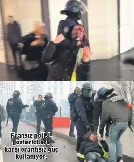 Yine polis, göstericilere destek veren engelli bir kişiyi darp ederek engelli sandalyesinden düşmesine neden oldu. Fransız polisi, her yerde göstericilere karşı orantısız güç kullanıyor. Parmakları kopan, yüzü kanlar içinde kalmış göstericilerin görüntüleri gerçekten korkunç.