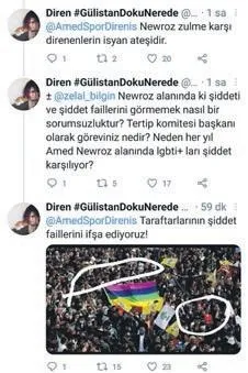 Bir başka paylaşımda ise "Tertip komitesi başkanı olarak göreviniz nedir? Neden her yıl Amed Nevruz alanında LGBTİ+'ları şiddet karşılıyor?" denilerek daha önce de LGBTİ+'ların Diyarbakır'da taciz ve şiddete maruz kaldıkları itiraf edildi.