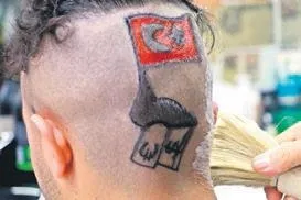 Bir genç, dolar düşünce Türk bayrağının ön planda olduğu yeni bir saç modeli yaptırmış. Berber, dolar ile euro'yu ayak altında simgelemiş!