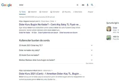 Eskiden 'Dolar' yazınca şak diye doların kaç TL olduğu ortaya çıkardı.