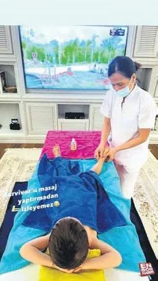 Ve bu paylaşımla ilgili "Fizyoterapist bize geldi. Burak 'Ben de masaj istiyorum' diye tutturdu. Sadece fotoğraf çektim" dedi.