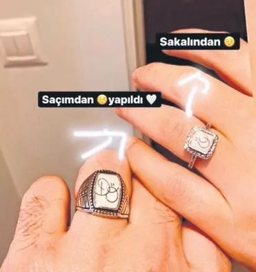Evli bir çift paylaştı bu fotoğrafı. Erkek, karısının saç telinden, kadın ise kocasının sakal telinden yüzük yaptırmış.