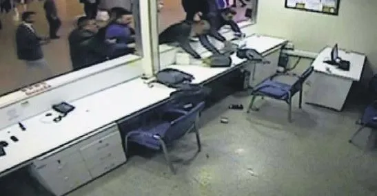 Saldırganlar, kapıları tekmeleyerek bilgisayarları ve yazıcıları yere fırlattı.