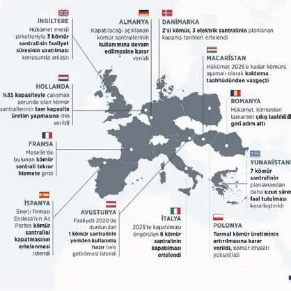 Almanya, Fransa, İngiltere, Hollanda, İspanya, İtalya, Yunanistan, Macaristan ve Avusturya gibi ülkeler kömürle çalışan elektrik santrallerinin ömrünü uzatma, kapatılan santralleri yeniden devreye alma ve mevcut üretimleri artırma yönünde adımlar attı