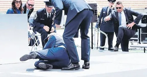 Biden 80 yaşında, zor ayakta duruyor ama korumaları da onu hiç düşerken yakalayamıyor.