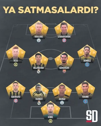 Almanya'nın köklü kulübü Borussia Dortmund, Reus ve kaleci Kobel hariç diğer dokuz yıldızı satmasaydı böyle efsane bir kadroya sahip olabilirmiş. M.United'da transfer olana Jadon Sancho da bu kadroda yer alabilirdi.