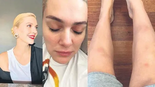 Ünlü oyuncu bacaklarındaki morlukları ve yorgun halini gösteren fotoğrafların altına şu sitem dolu notu düştü: