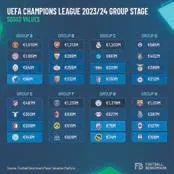 Aşağıdaki tablo Şampiyonlar Ligi'ne katılan takımların kadro değerleri. Takımların gruplara katıldıkları torba sıralamasında bazı farklar olsa da aşağı yukarı aynı.