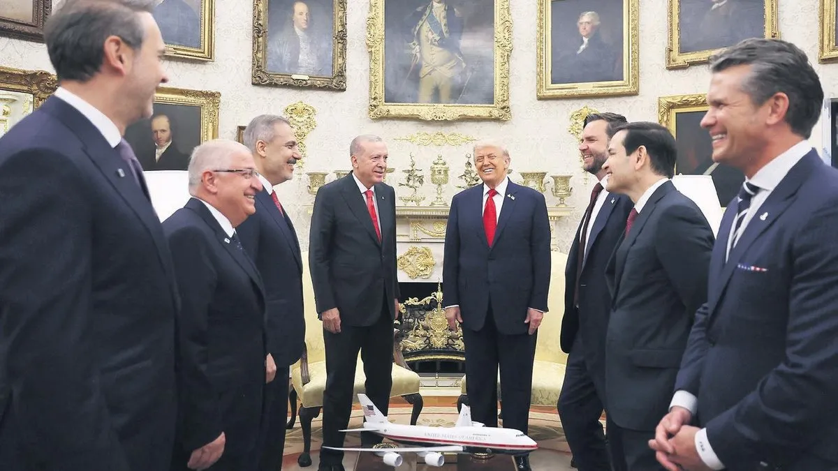 OVAL OFİS GEZİSİ: ABD başkanlarının resmi çalışma odası "Oval Ofis" olarak biliniyor. Bir dünya liderinin Oval Ofis'te kabulü ise Başkan'ın o ülkeye ve liderine verdiği önemin göstergesi kabul ediliyor. Ancak Cumhurbaşkanı Erdoğan'ın, Başkan Trump'la Oval Ofis'teki görüşmesi protokol açısından ilklere de sahne oldu. Trump, Cumhurbaşkanı Erdoğan'ı çok sıcak karşıladı. Önce Oval Ofis'i gezdirdi. Duvarlara astırdığı tabloları tek tek gösterdi. Değerli tabloların Biden döneminde depoda bekletildiğini söyledi. "Bu Lincoln, G. Washington, Roosevelt tablolarını Biden depoya kaldırtmış, bunları çıkarttım, astırdım" dedi. Ve ekledi: "Oval Ofis'i gezdirdiğim ilk lider siz oldunuz!"