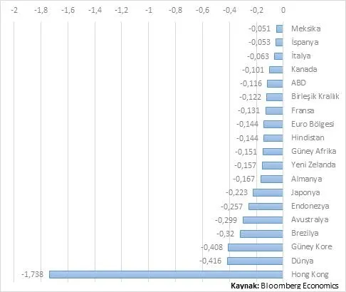 İyimserler Çin'in yıl genelinde sadece 0,1 puanlık bir büyüme kaybı yaşayacağını hesaplıyorlar. Kötümserler arasında Çin'in bu yıl 1,5-2 puan daha düşük büyüyeceğini tahmin edenler var. Mevcut belirsizliklerden dolayı yılın geneline dair büyüme tahmini yapmak çok zor. Tahminler konusunda temkinli olmak lazım. Zira, bütün riskler ve Pekin hükümetinin ekonomik aktiviteyi destekleyici hamlelerinin etkileri bugünden öngörülemez. Ancak, 2020'de Çin'in 1990'dan sonraki en düşük büyüme performansını göstermesi ve küresel büyümenin yüzde 3'ün biraz altında kalma ihtimali oldukça yüksek.