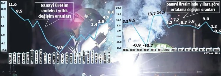 Sanayi üretimi aralıkta yıllık bazda yüzde 8.6 arttı. Şubat 2018'den sonra gördüğümüz en yüksek rakam. Kur şokundan sonra üretimde en kötüsünü yüzde 9.9'luk daralmayla Aralık 2018'de yaşamıştık. 2019'un ilk aylarında yavaş da olsa rampayı tırmanmaya başladık. Yılın son dört ayında ise hızlandık.