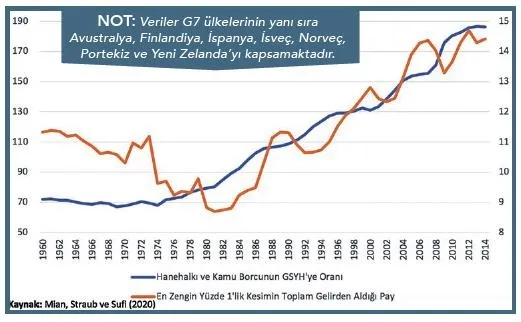 Küresel elitler birçok krizin baş aktörleri arasındadır. Genelde krizlerin fitilini ateşleyenler de onlar krizlerden en fazla nemalananlar da... Tıpkı 2008'de küresel finans krizinde olduğu gibi. Koronavirüs krizi çıkış itibarıyla farklı bir kategoride ama borç, bu krizde de büyük sorun. Bireyler ve devletler krizden çıkış için daha fazla borçlanmaya yöneliyorlar. Borcu veren kim? Küresel ekonomiyi yönlendiren yüzde 1'lik kaymak kesim. 1980'li yıllardan bu yana gelişmiş ülkelerde bireylerin ve devletlerin borçluluk düzeyi arttıkça en zengin yüzde 1'lik kesimin toplam gelirden aldığı pay da artmış. İki değişken arasındaki güçlü ilişki tesadüf değil. Ülkeler koronavirüsün ekonomik etkilerini yumuşatmak için devasa paketler açıkladılar. Bütçe açıkları artacak. Peki, bu bütçe açıkları daha fazla borçla mı finanse edilecek? Birçok ülkede bireyler ve kamu zaten kapasitelerinin çok üzerinde borçluluk seviyesine sahipler. Daha fazla borçlanmak gelecek krizlerin boyutunu artırır. Eskiye nazaran çok daha fazla iktisatçı, ilave borçlanmanın artık sürdürülemez olduğu ve artan bütçe açıklarının en zengin yüzde 1'lik kesimden daha fazla vergi alınarak kapatılması gerektiği noktasında görüş bildiriyor.