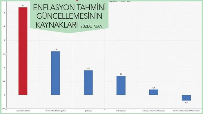 Hava koşullarındaki olumsuzlukların yanı sıra koronavirüsün gıda arz ve talebi üzerindeki etkileri uluslararası gıda fiyatlarının yükselmesine sebep oluyor. Raporda küresel koşulların bir yansıması olarak içeride gıda enflasyonunu arttıracağı öngörülüyor. TCMB bütün bu gelişmeler ışığında yıl sonu enflasyon beklentisini yüzde 8.9'dan 12.1'e yükseltti. 3.2 puanlık bu güncellemenin 1.6 puanının TL cinsinden ithal ürünlerin fiyatlarında yaşanan artıştan kaynaklanması bekleniyor. Enflasyon tahminini aşağıya çeken tek unsur ise hizmet sektöründeki KDV indirimleri.