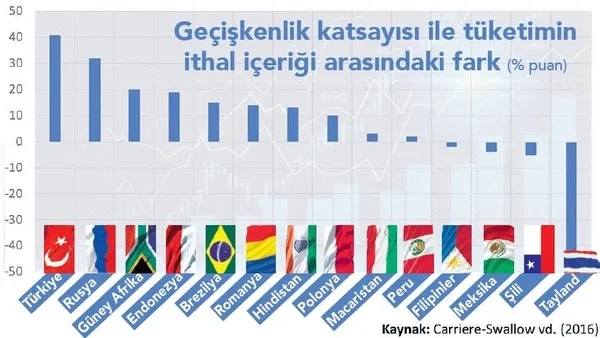 TCMB'nin enflasyon raporları sadece ekonomik aktivite ve enflasyon görünümünü analiz etmekle kalmaz, ayrıca ekonominin yapısal meselelerine ve güncel gelişmelere dair yapılan bilimsel çalışmaların özetlerini de içerir. Paylaşılan bu çalışmaların bir tanesi Türkiye'nin enflasyon konusunda başını ağrıtan döviz kuru geçişkenlik etkisi üzerine. Türkiye tüketim ve üretimin ithal içeriğini noktasında diğer gelişmekte olan ülkelerden bariz bir negatif ayrışma yaşamıyor. Tüketim ürünlerinin ithal içeriği Türkiye'de yüzde 15 iken, diğer gelişmekte olan ülkelerde ortalama yüzde 14.6. Kayda değer bir fark yok; ancak ulusal para birimindeki değer kayıplarının enflasyonu artırıcı etkisi Türkiye'de diğer ülkelere kıyasla çok yüksek. Türkiye'de döviz kurunun geçişkenlik katsayısı ile tüketimin ithal içeriği arasındaki fark yaklaşık 40 yüzde puan kadar. TL değer kaybettiği zaman bunun enflasyonu artırıcı etkisi, ekonominin yapısal koşulları içerisinde gerçekleşmesi beklenen orandan daha fazla gerçekleşiyor. Macaristan ve Peru gibi ülkelerde yapısal geçişkenliğin üzerinde bariz bir döviz kuru etkisi görülmüyor. Bazı ülkelerde geçişkenlik etkisi yapısal olarak olması gerekenin de altında. Peki, bizde geçişkenlik etkisi neden yüksek seyrediyor olabilir? Para politikasının öngörülebilirliğinin düşük olması, bu farkı açıklayan bir faktör. Ayrıca eğer ithal içeriğin yüksek olduğu tüketim ürünlerinde talebin fiyat esnekliği düşük ise, şirketler ciro kaybederiz korkusu yaşamadan döviz kurlarındaki artışı rahat ve fazlaca fiyatlarına yansıtıyor olabilirler.